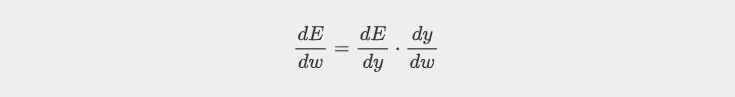 Burada hata (E), tahmine (y) bağlıdır; tahmin (y) ise ağırlığa (w) bağlıdır. Eğer ağırlığımızı (w) güncellemek istiyorsak: